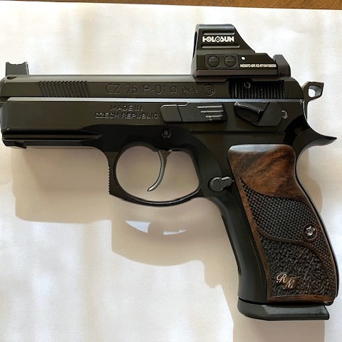 CZ P-01 Custom Pistol Grips made of Root Walnut with Custom logo made of Silver,crafted to deliver striking aesthetics and lasting performance. These grips are precision-milled for a perfect fit and hand-polished to a smooth finish.