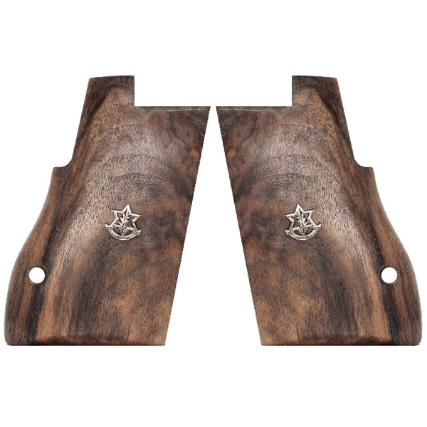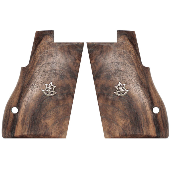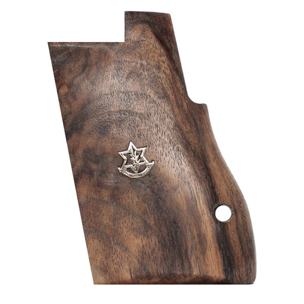 Desert Eagle Custom Pistol Grips made of Walnut wood with Custom logo made of Silver,crafted to deliver striking aesthetics and lasting performance. These grips are precision-milled for a perfect fit and hand-polished to a smooth finish.