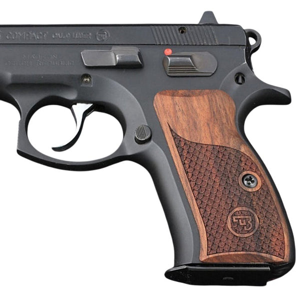 CZ 75 Compact grips made of walnut wood Dragon skin checkering with custom logo engraved.