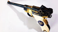 Luger P08 grips made of Ivory PMMA Acrylic with custom Logo made of Brass.